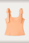O decote quadrado é moderno e elegante, destacando colo e ombros de forma sofisticada. As alças largas com detalhe de laço trazem feminilidade e um toque de acabamento de peça de boutique. O corpo tem recortes que afinam visualmente a cintura e deixam o caimento bem alinhado.
