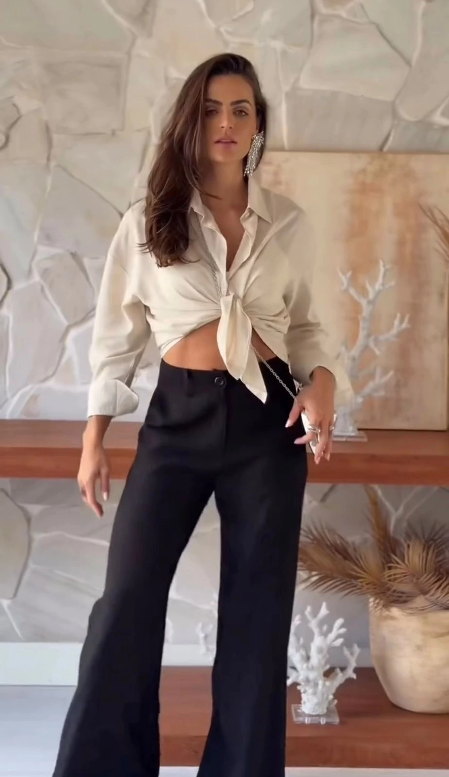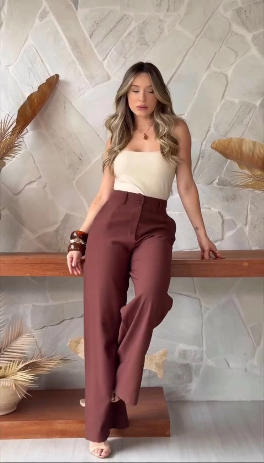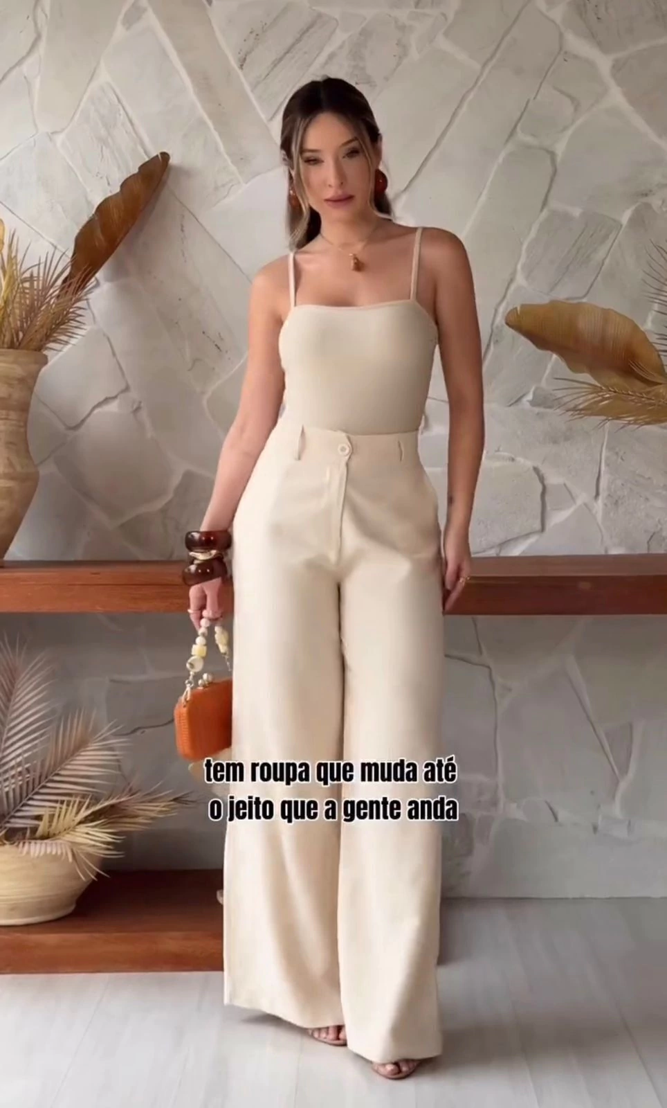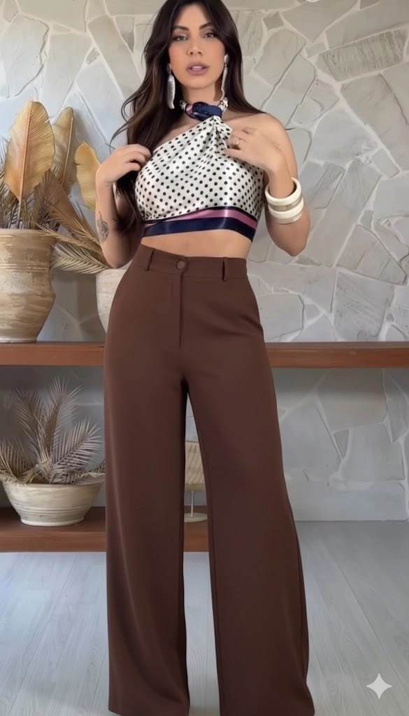 A Calça Fiorela Pantalona une o caimento elegante do Marrant com perna ampla e movimento fluido, entregando um visual de alfaiataria moderno e muito confortável para trabalho, eventos e produções casuais.