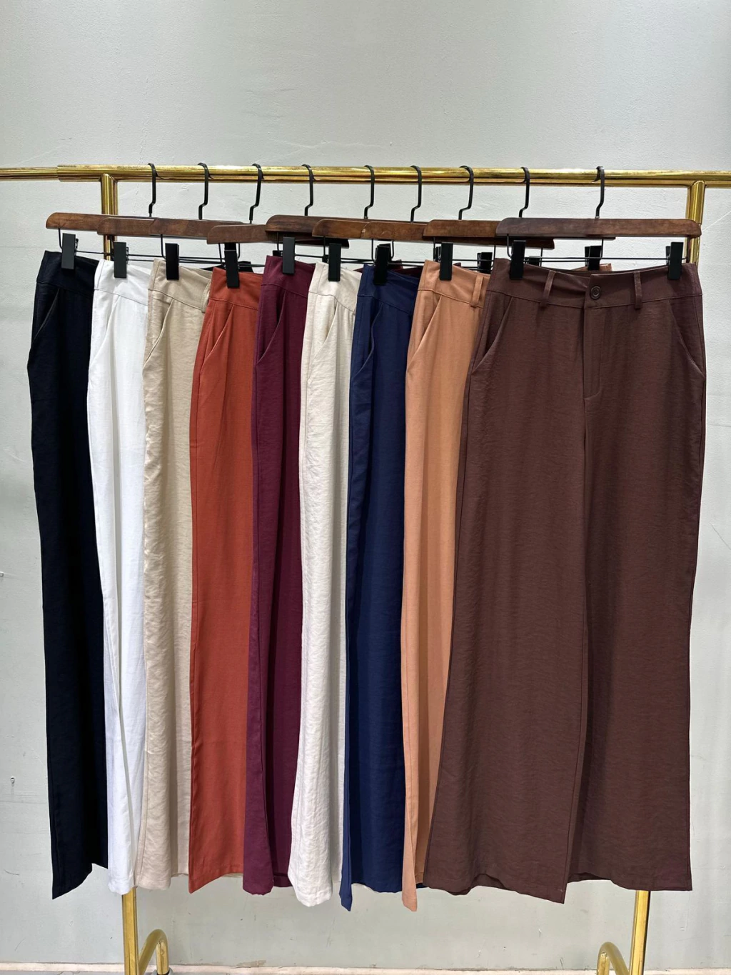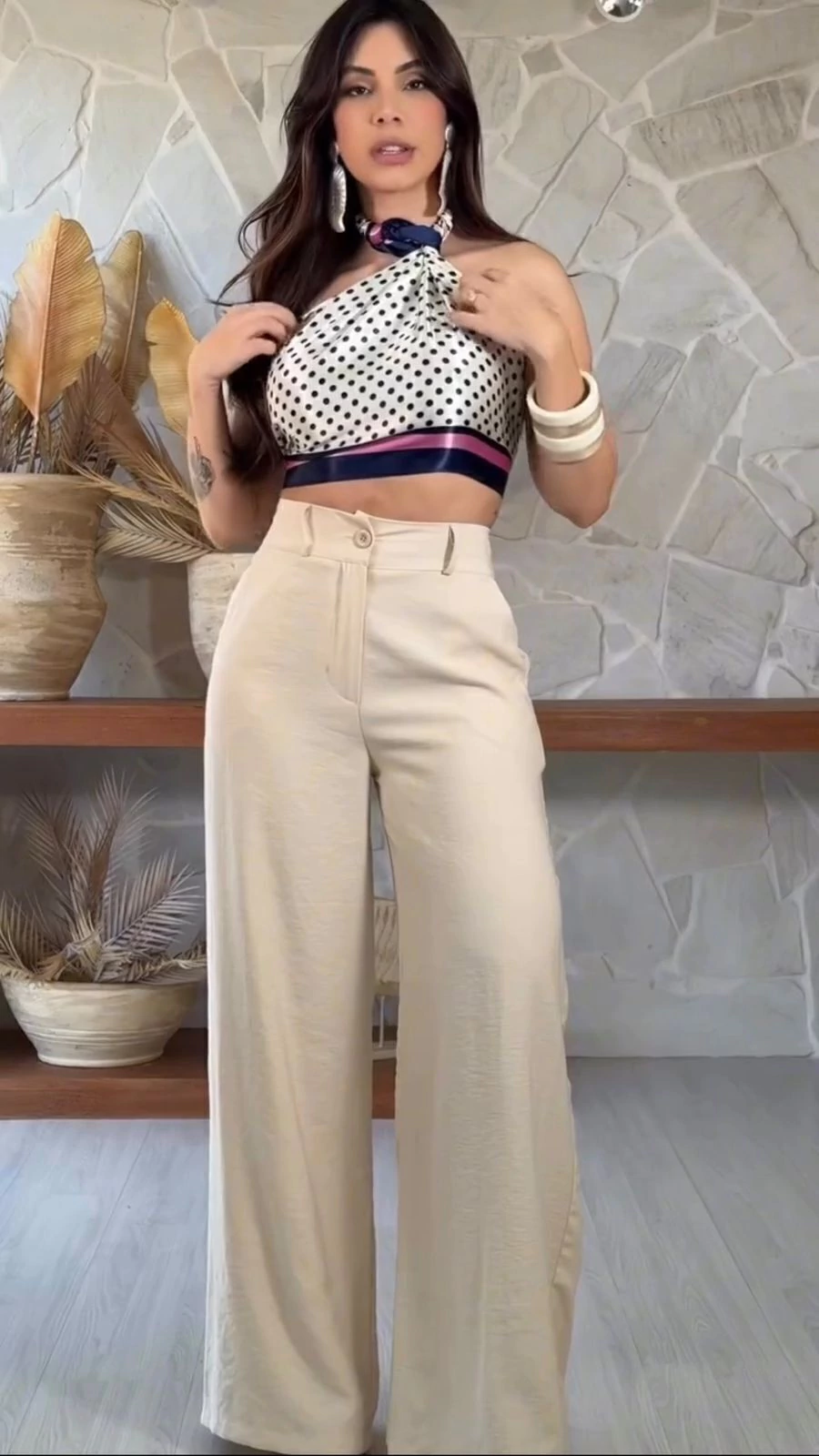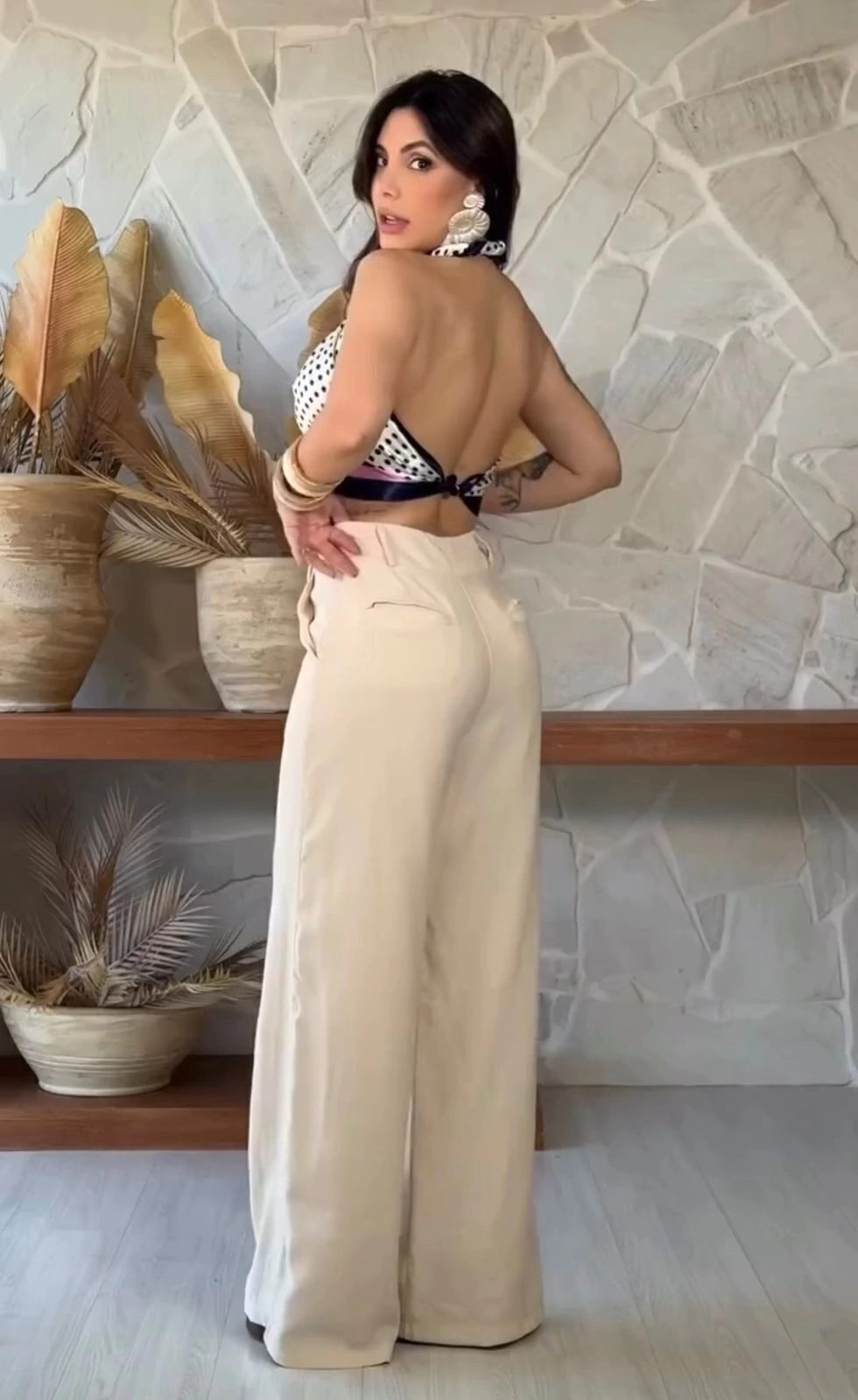 A Calça Fiorela Pantalona une o caimento elegante do Marrant com perna ampla e movimento fluido, entregando um visual de alfaiataria moderno e muito confortável para trabalho, eventos e produções casuais.