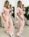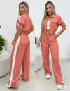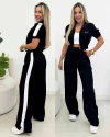 A jaqueta cropped possui detalhe em zíper frontal, bolsos utilitários e elástico na barra, oferecendo ajuste perfeito e um visual atual. A calça pantalona apresenta faixa lateral contrastante, cós com elástico e amarração, proporcionando conforto e estilo em uma modelagem que alonga a silhueta.