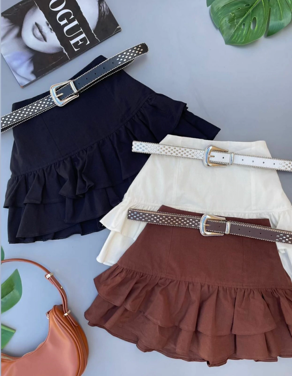Saia Babado em Tricoline com Zíper - Não Acompanha Cinto – Leveza, Movimento e Estilo Atemporal