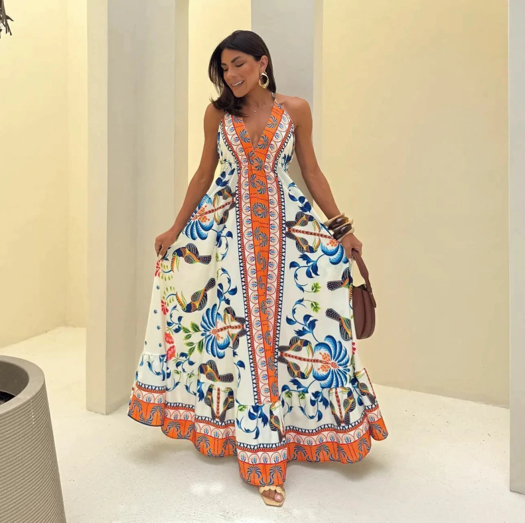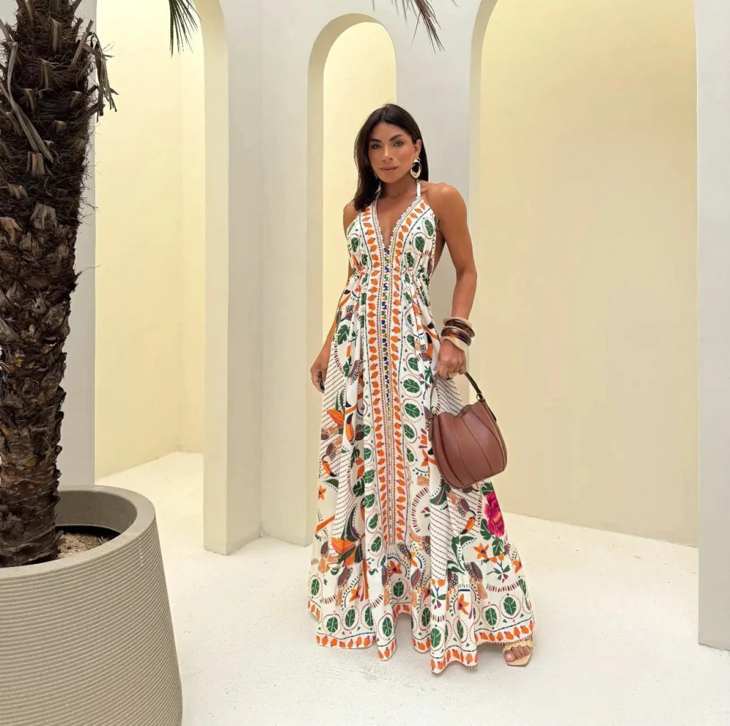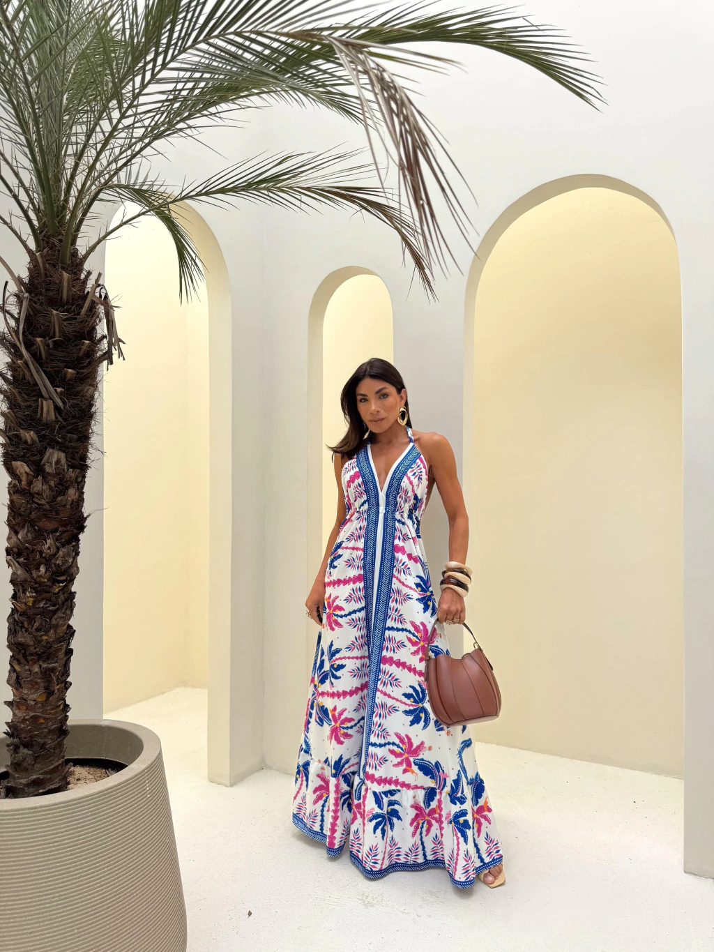 O Vestido Indiano traz o charme das estampas inspiradas no artesanato indiano com caimento leve e movimento elegante. Feito em tecido crepe de toque macio, tem modelagem ampla e fluida, ideal para alongar a silhueta e garantir conforto o dia todo.