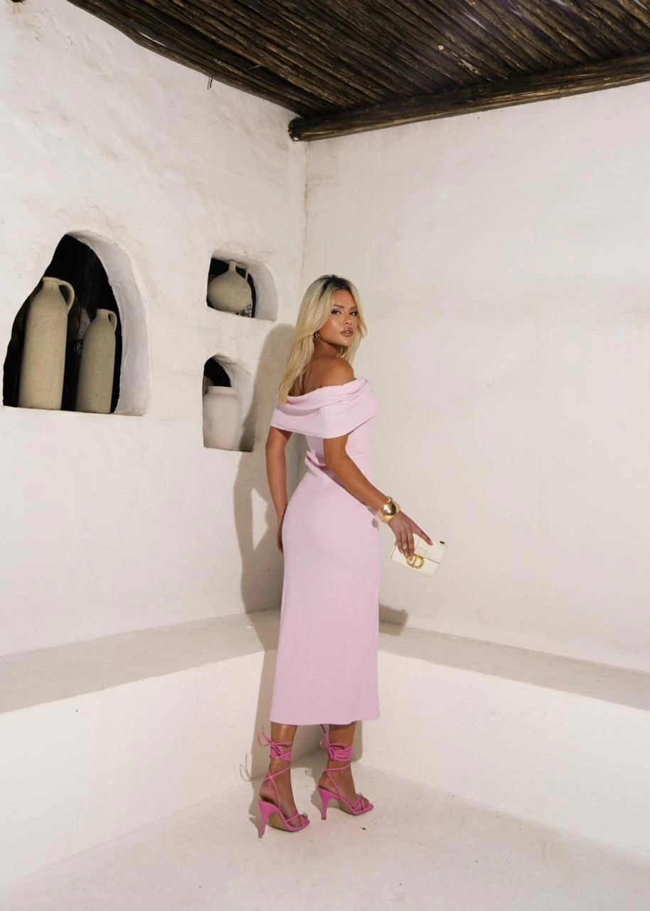 Vestido Rosana – Midi Ombro a Ombro em Ribana Canelada